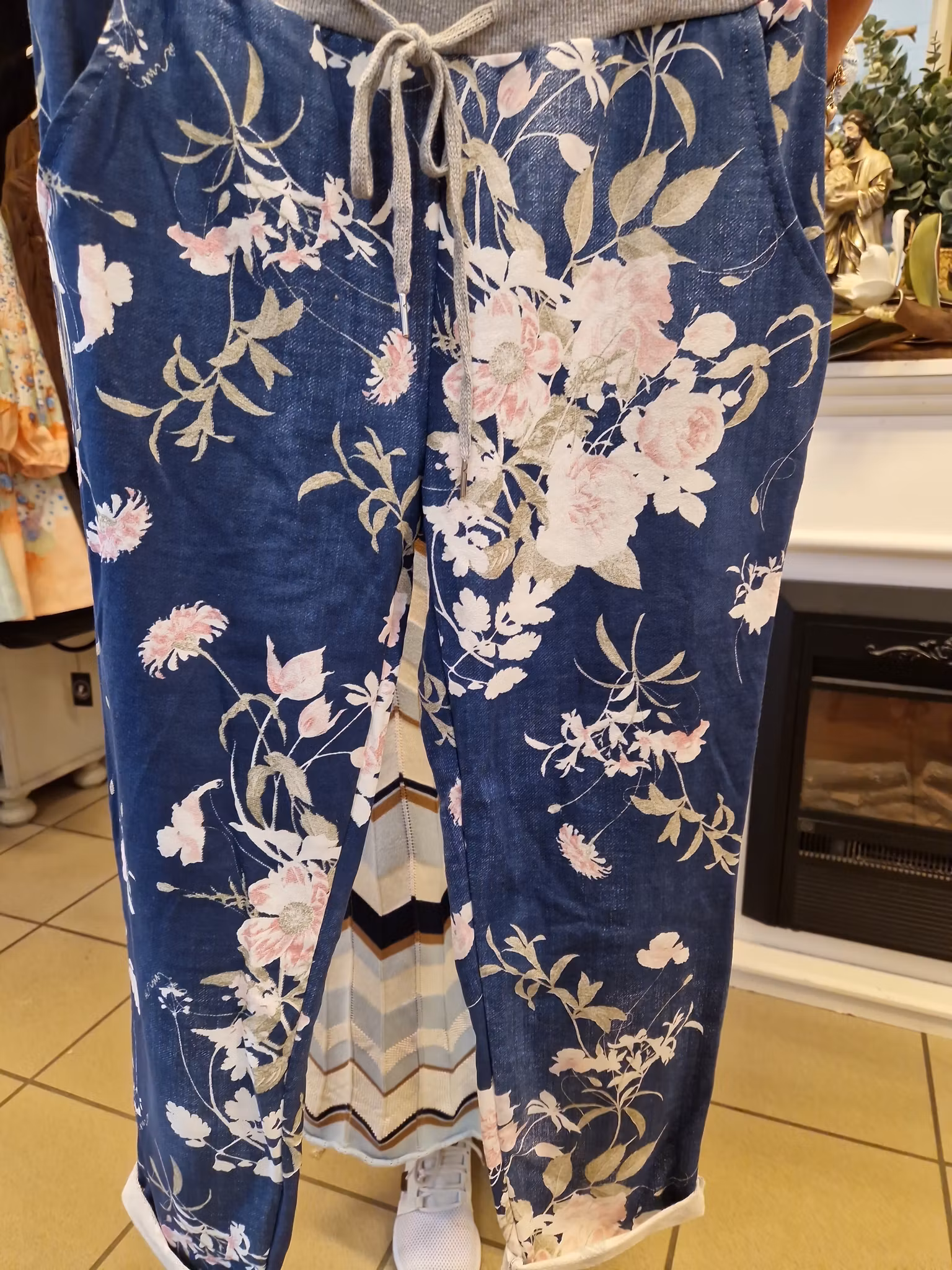 Blå bukse med rosa blomster Moondust 299,- Myk og behagelig bukse I bomull med blomsterprint Den har strikk og snor I midjen med lommer. God one size som passer fra XS til XL Størrelse One size På lager Legg i handlekurv Del Lagerbalanse: Artikkelnummer: 1516 Informasjon Myk og behagelig bukse I bomull med blomsterprint Den har strikk og snor I midjen med lommer. God one size som passer fra XS til XL