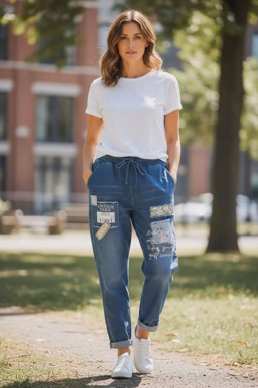 Jeans med sølv detaljer og lapper 799,- Tøff jeans med påsydde lapper og sølv skrift. Den er I myk joggebukse modell med strikk og snor I midjen. God I størrelsen Størrelse S -M L/XL På lager Legg i handlekurv Del Lagerbalanse: Artikkelnummer: 1228 Informasjon Tøff jeans med påsydde lapper og sølv skrift. Den er I myk joggebukse modell med strikk og snor I midjen. God I størrelsen