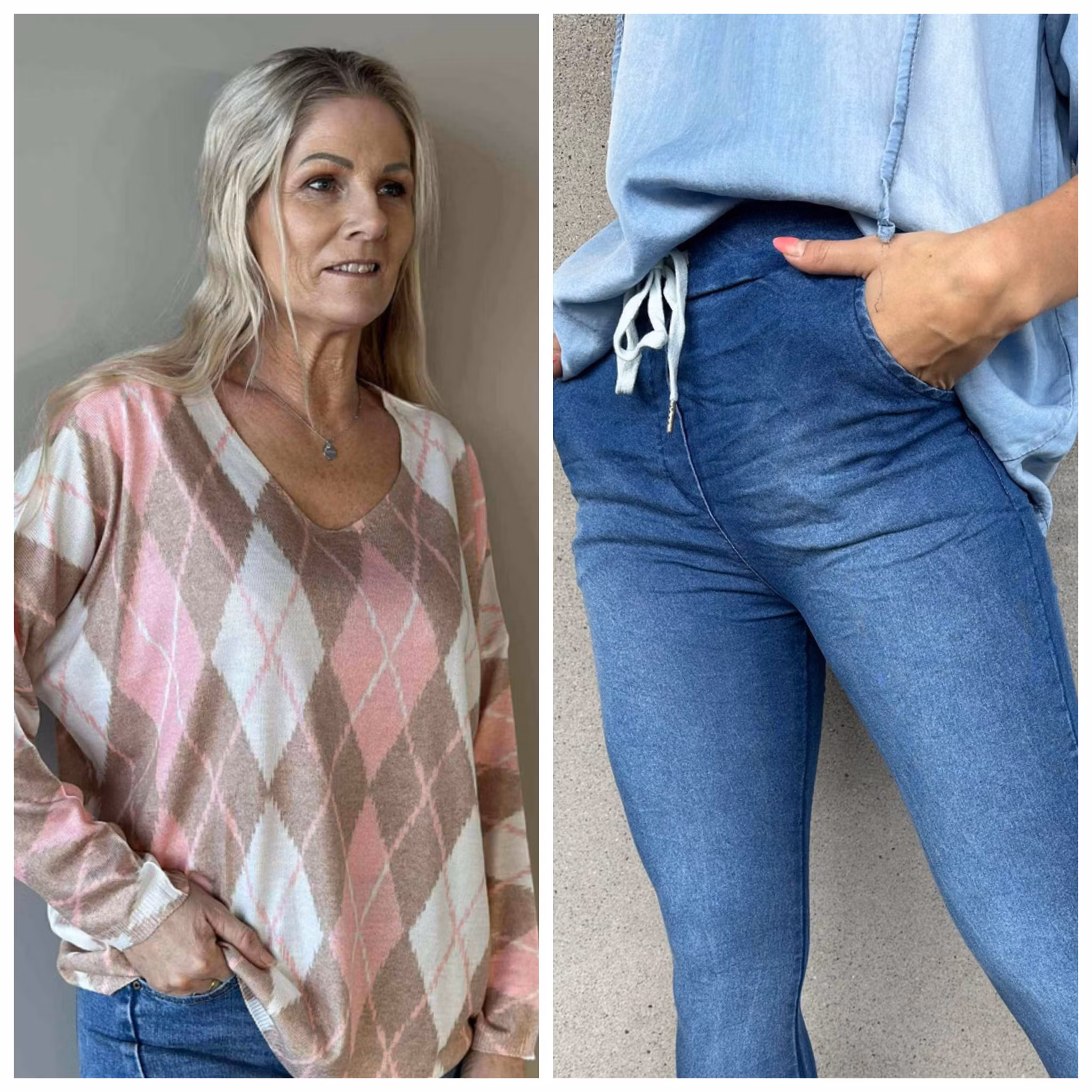 Tøff jeans isupermyk stretch kvalitet. God I størrelsen med strikk og snor I midjen. .Favoritt buksa fra Pepper. Buksa er en nyanse lysere enn de første bildene.
